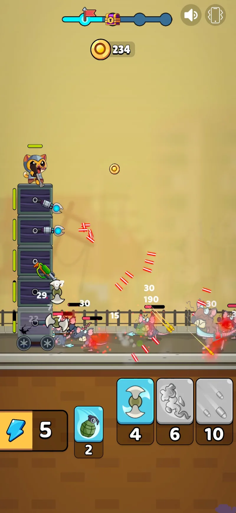 • Fast-Paced Fights: Players will be asked to take part in missions to bolster a warrior against unsafe adversaries. Particularly, they are sneaky rats that are attempting to crush your current moving tower.