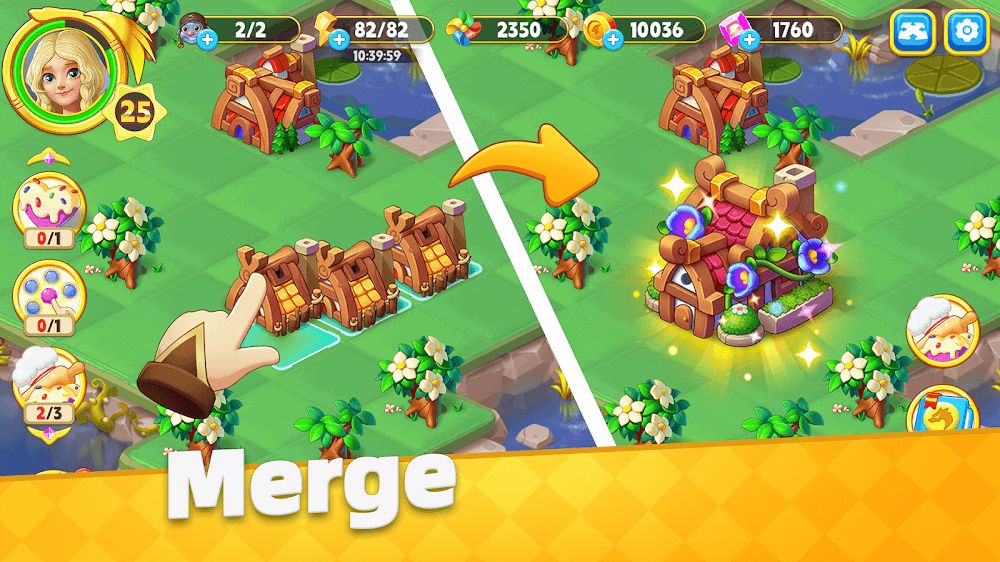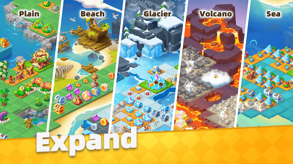 The magical world will be created by combining pieces and creating new items. Players of Merge Legends: Dragon Island will complete the merging task in turn to build the island. Similar items will be combined according to the rules. Players just need to swipe to interact with objects and perform tasks on the island.