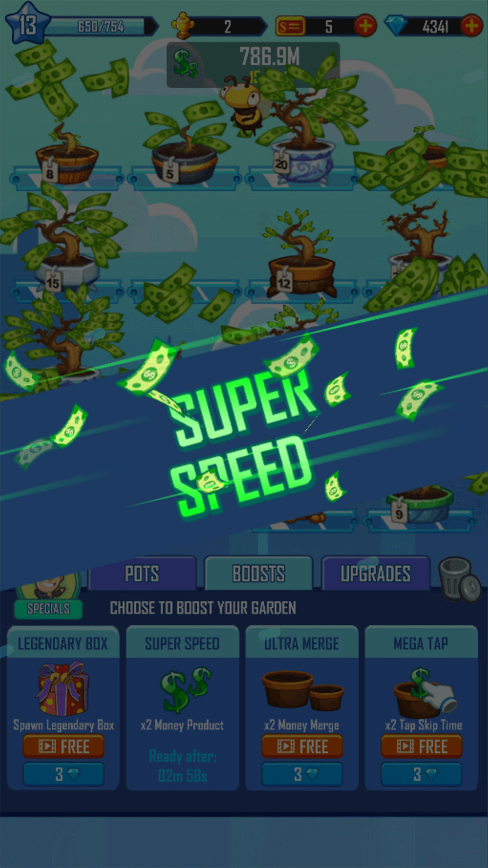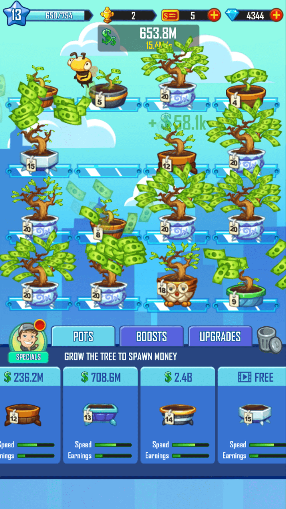 This game is designed to help its players get extremely relaxing experiences during their leisure time. Therefore, the game’s operations will be simply performed in the clicker’s direction. You will simply place the potted plants in their correct positions, dragging and dropping them to combine with the same plants to grow into a better pot. And you should also remember that if you do an excellent job of merging your pots, the plants will also grow, and the amount of money produced will also be significantly more. Generate massive amounts of coins, add them to your account balance, and become a cash crop tycoon.