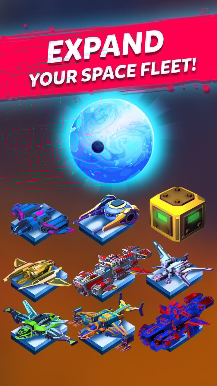 You can buy spaceships from the shop, merge them, sell them for more money, or use them in the battle to defeat enemies. Spaceships can purchase with gold coins, but the purchasing rate increases or doubles after each purchase of the spaceships. Suppose the spaceship cost initially is 350 gold coins; after one asset, it will increase to 650 gold coins, so to buy another spacecraft, you should pay 650 coins. To buy more spaceships and to win the level, you should earn more gold coins. Diamonds also help you achieve spaceships from crates and gain through lucky draws and spins.