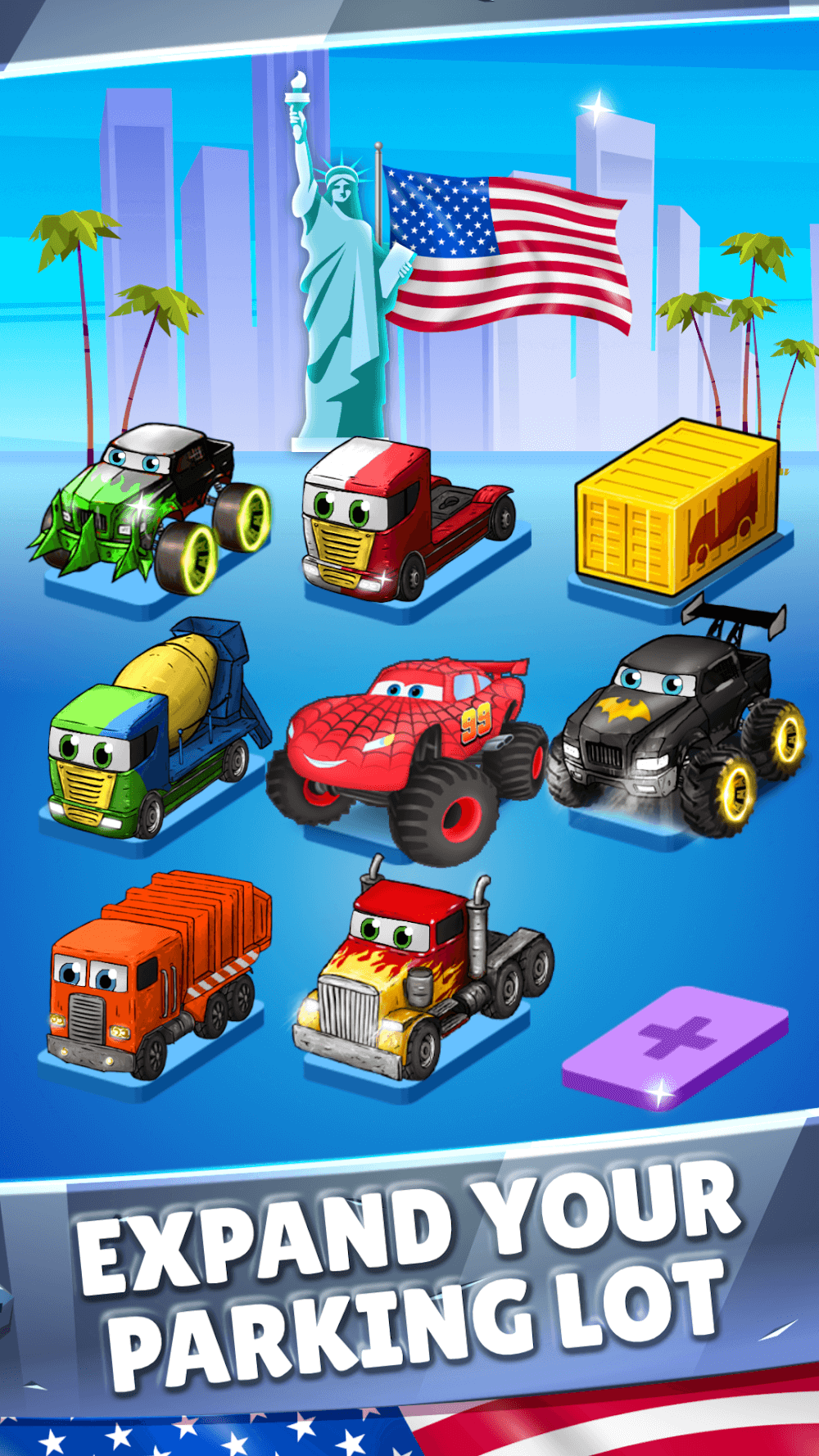 Merge Truck’s fleet is very diverse, including police cars, trucks, trucks, dump trucks, and cranes. Each vehicle is uniquely equipped to create a parking lot with various colors and genres. If you merge any two cars, you will get a brand-new car. However, you will not know which car you will get next because it will appear randomly. Many cars rely on your luck and are listed as scarce cars to turn out.