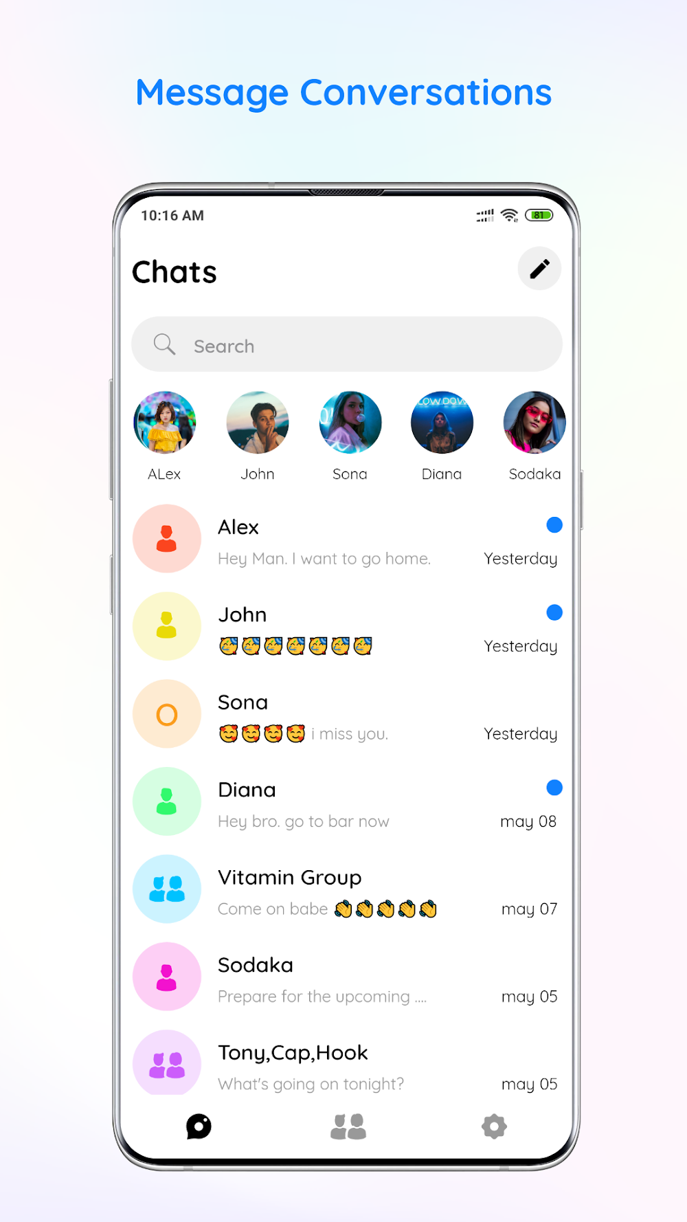 • Receive, read, send: Users can start conversations with many other contacts. They can maintain the conversation by sending and receiving messages. The application will display the viewed, sent, and received modes for users to easily distinguish. The application will be a bridge to help users maintain connections with many other people.