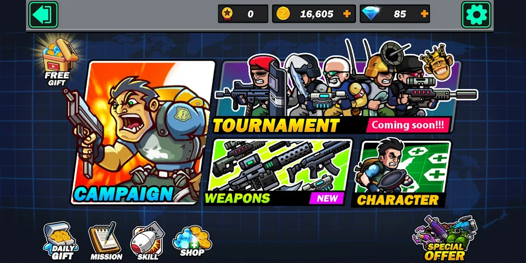 Enter decisive action and create classic battles in Metal Shooter: Super Soldiers. Players will fight enemies and use guns mainly. The adventure of defeating enemies will be carried out in real-time; players need to pay attention to avoid complicated problems. Players also need to be quick to change strategies or prepare for additional situations if they encounter serious problems.