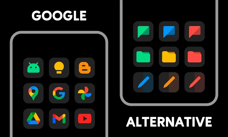MiDark creates a collection of icons with a minimalist design style and a unique blend of black and other colors. Over time, you may feel inspired to apply the resources to your device. They can often create a great combination because of the same uniform design.