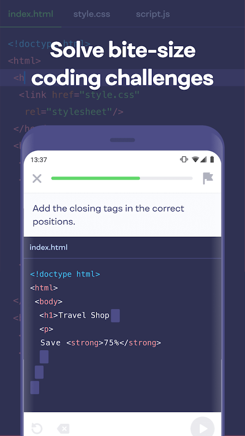 - Solve bite-sized challenges: The app will use learning while playing to increase effectiveness for learners.