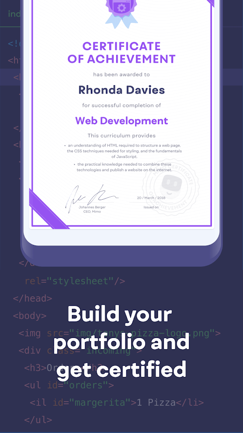 - Earn certificates to showcase skills: When we finish studying the app’s course, the user will also be provided with a certificate certifying their learning.