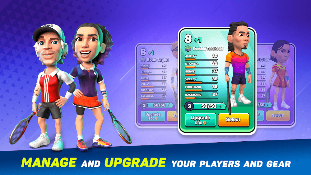• Win and upgrade: To be able to win a lot, don’t forget to upgrade your characters and rackets. When your characters and your rackets are upgraded, everything becomes easier. You will launch the strongest shots that your opponent will not be able to block, giving you extremely high scores.