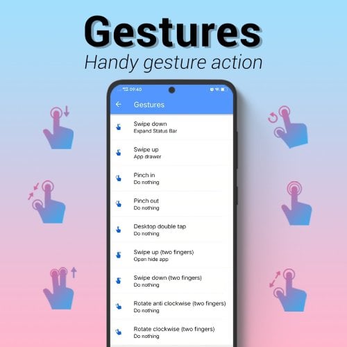 The application offers a modern toolbar, integrating many functions and special features. A variety of icon packs are included for you to choose from for your device. Either portrait or landscape mode will rotate if you change how you hold your device. The app also allows you to change the gesture feature if you want a more modern way of swiping and adds a click to select your favorites. Choose to add grids to certain items and align margins for images or text.
