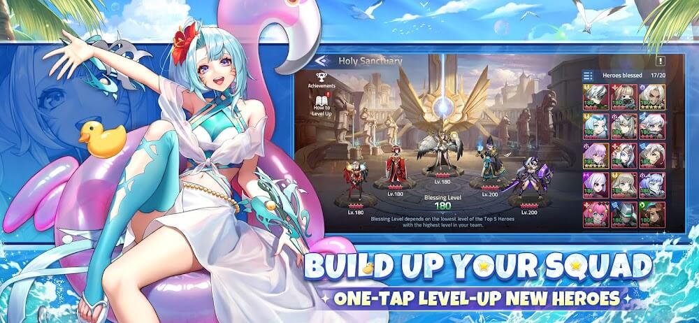Create your own superhero team and train their fighting skills strategically. Create a Guild with friends, upgrade buildings and bring glory to your Guild!