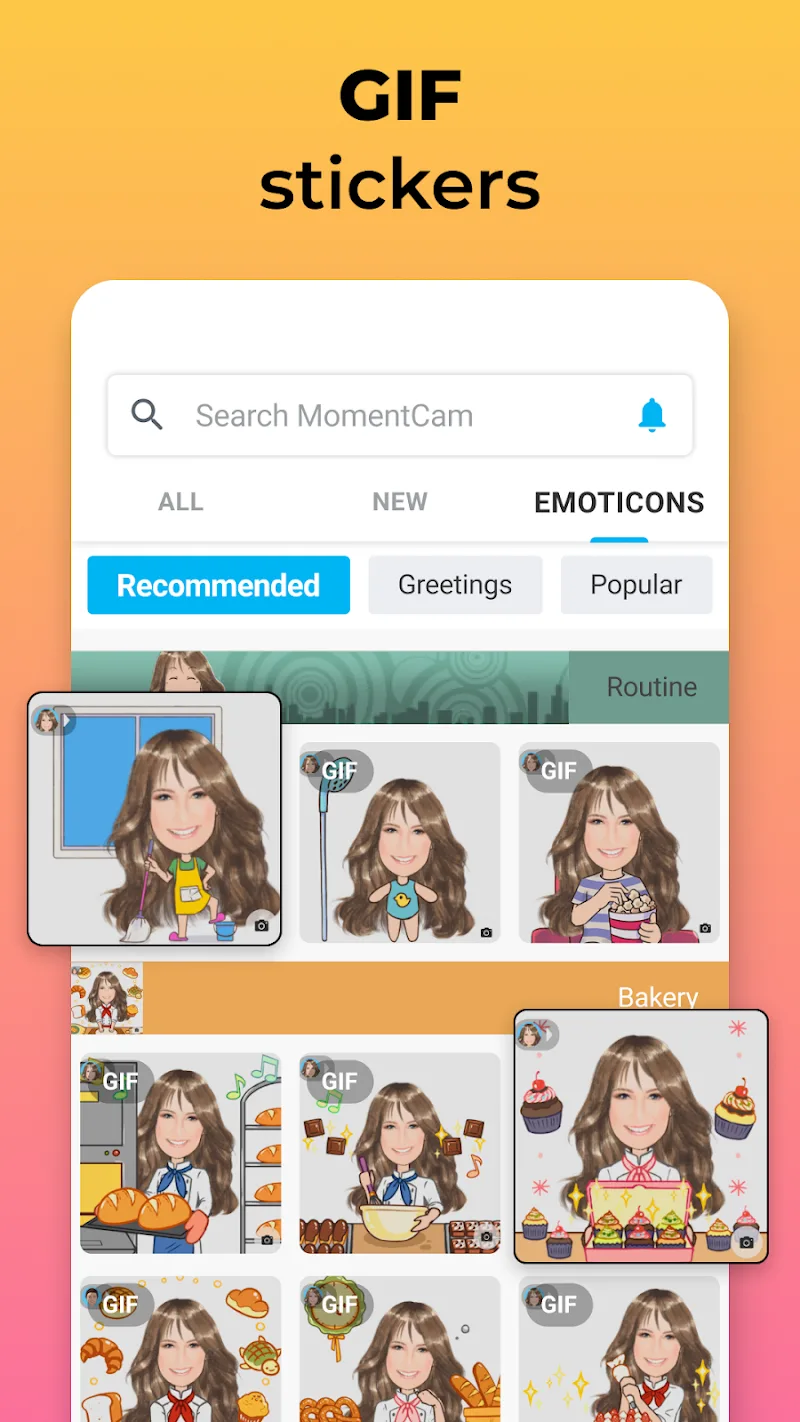 - Create Funny GIFs and Emojis: Users will create their own vivid avatars and add new animated GIFs. They will also create new emoticons to express their personality and character.