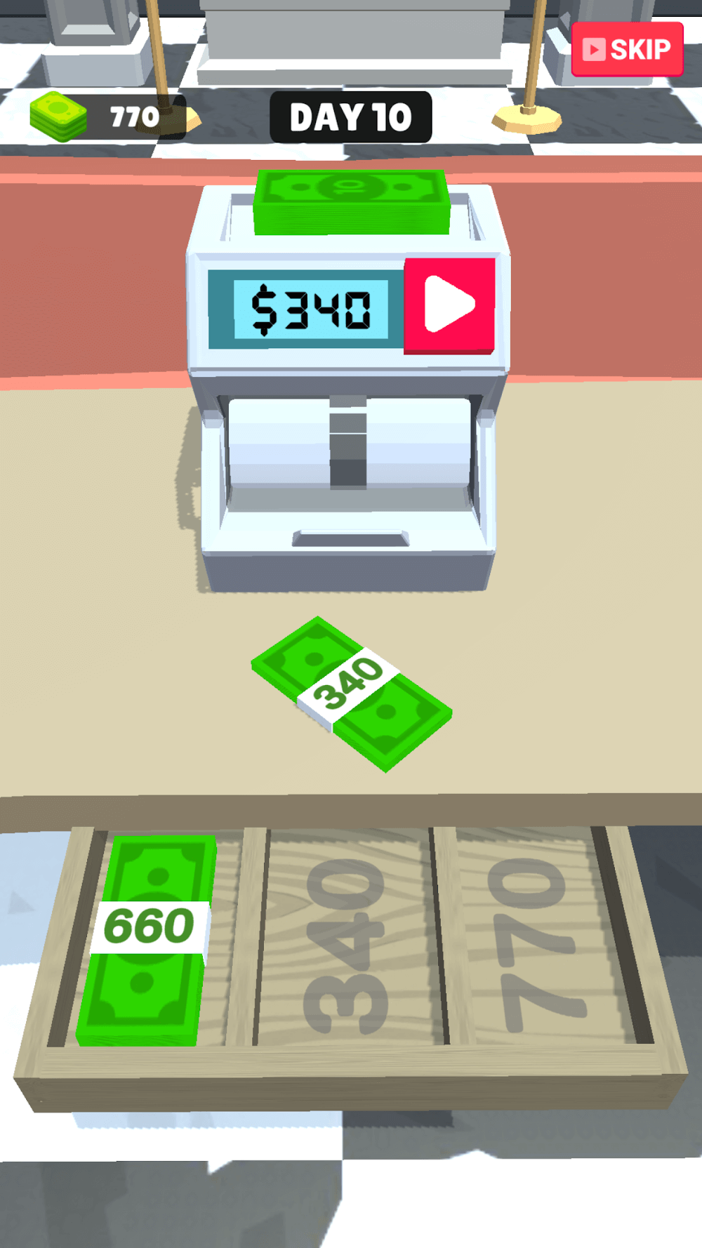 The gameplay is extremely simple when you must swipe the screen left or right to approve the necessary check or email. You will then select the invoices to withdraw the exact amount and proceed cautiously to avoid confusion. Another critical task is to count money to check and insert credit cards by customer specifications. After counting it, you can manipulate the money to enter the pin and the amount corresponding to each request. In addition, to ensure security and prevent theft, players can create a password for the lock. It is critical to remember that if you are in danger, you must use the SOS button to distract the thief. Furthermore, the money you earn at the end of each level allows you to purchase new items and upgrade your workspace.