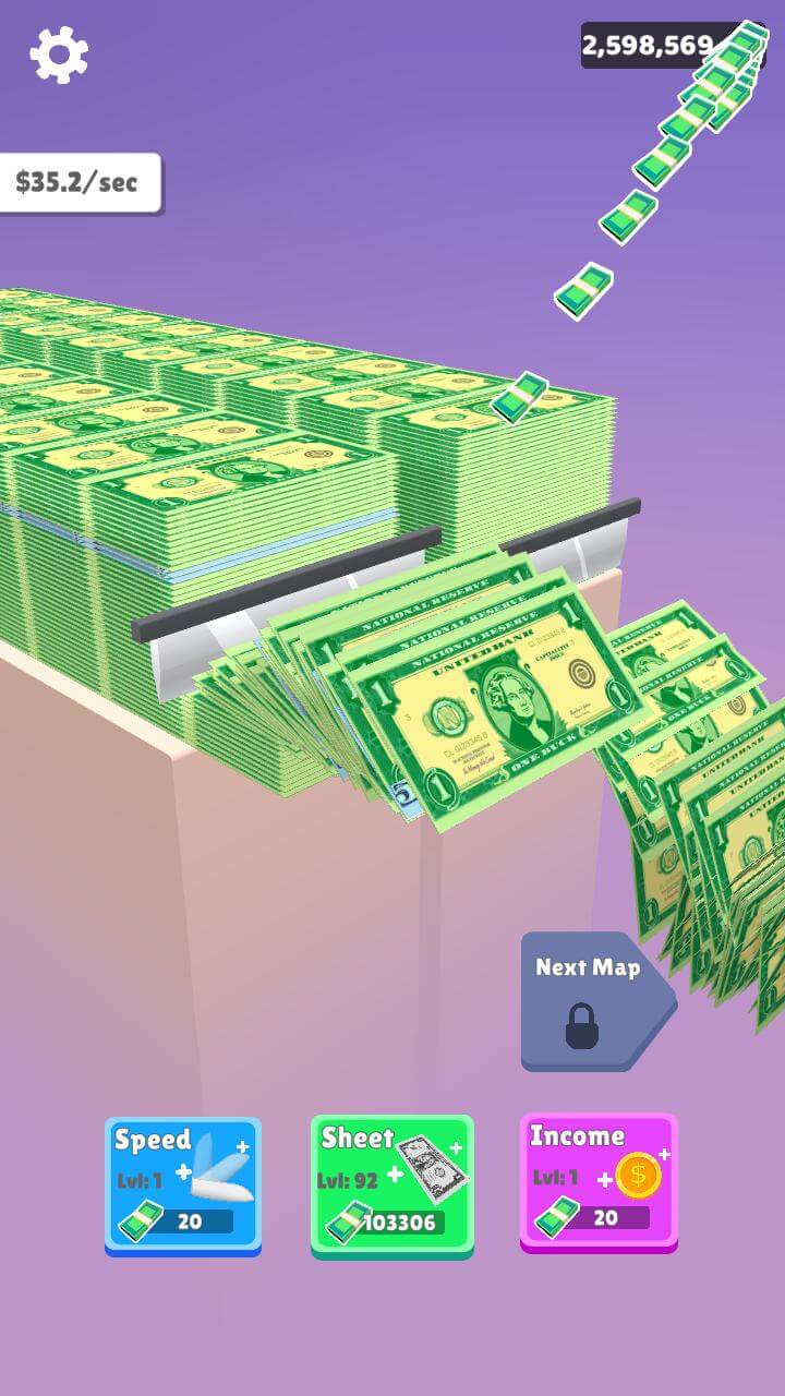 Have you ever thought that one day you will become the richest person in the world? If not, this Money Maker Idle will bring you these new feelings when you own a huge fortune. Players will use the printer to print valuable bills, then use them for many different investment purposes. The game will also have challenges, and you need to overcome them to improve yourself every day.