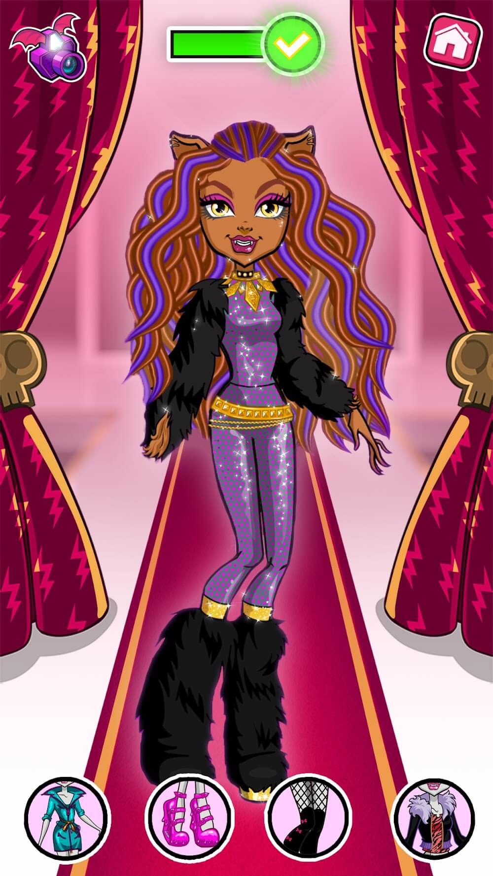 The types of beauty tools at Monster High™ Beauty Salon are rich and varied. Have all the necessary and comprehensive tools and accessories in the beauty room, just like in the real world. This will give players the most realistic experience possible. Upon entering the hairdressing room, you’ll find several tools available, including color, scissors, a curling iron, and magic hairspray. Decorative accessories and various nail polishes are available in the nail salon. You will be impressed by the unique patterns and colors used in clothes, shoes, hats, and socks. For consumer makeup, you can use tools such as lipstick, powder, foundation, and mascara in the makeup room.