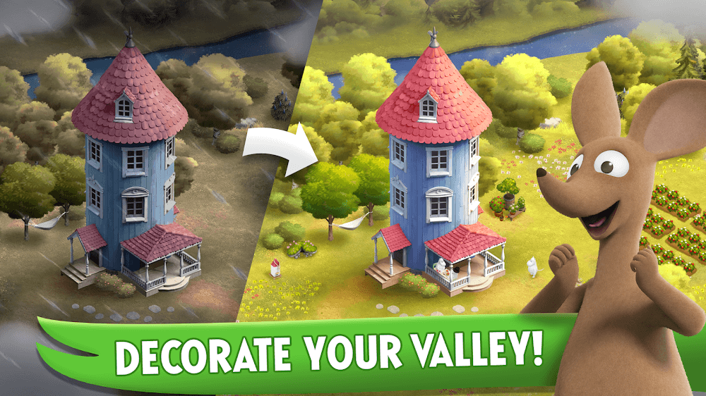 Moomin Mod APK is a soul-soothing game where you match countless items in your journey and earn yourself something worthwhile with your progression. Besides, the game employs decoration and escapes gameplay, where you renovate everything in your town with your match-3 talents and enjoy the sight you build over time with lovely friends.