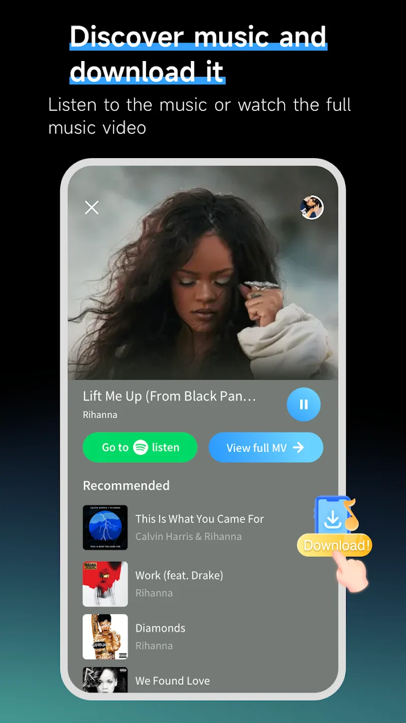 Music Recognition allows you to instantly identify songs playing around you. Simply record a audio clip or hum the melody, and Music Recognition will detect the song title and artist in seconds. You can then listen to song previews, view music videos, add tracks to Spotify playlists, and more. Even detect songs playing in external apps via popup recognition. With real-time results powered by ACRCloud, Music Recognition delivers a seamless music discovery experience.
