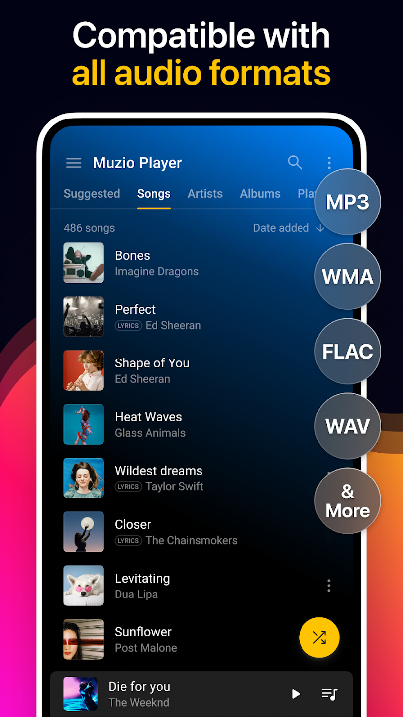 This MP3 player can play all of your music in the appropriate formats for you to listen to. Muzio is not restricted to only playing MP3 files; it is compatible with any format used for audio files. Not only compatible with audio files, but the app can save and restore playlists generated by the user or automatically. Moreover, you may instantly find and play your favorite songs by entering a keyword into the search bar.