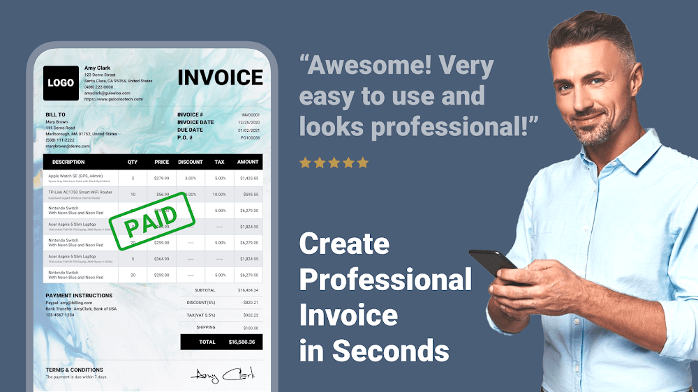 Invoice Maker & Estimate Maker is a feature that helps create invoice templates with full features. From there, managing different payments becomes easier later. You can also completely export this information into different formats, which makes sharing more convenient.