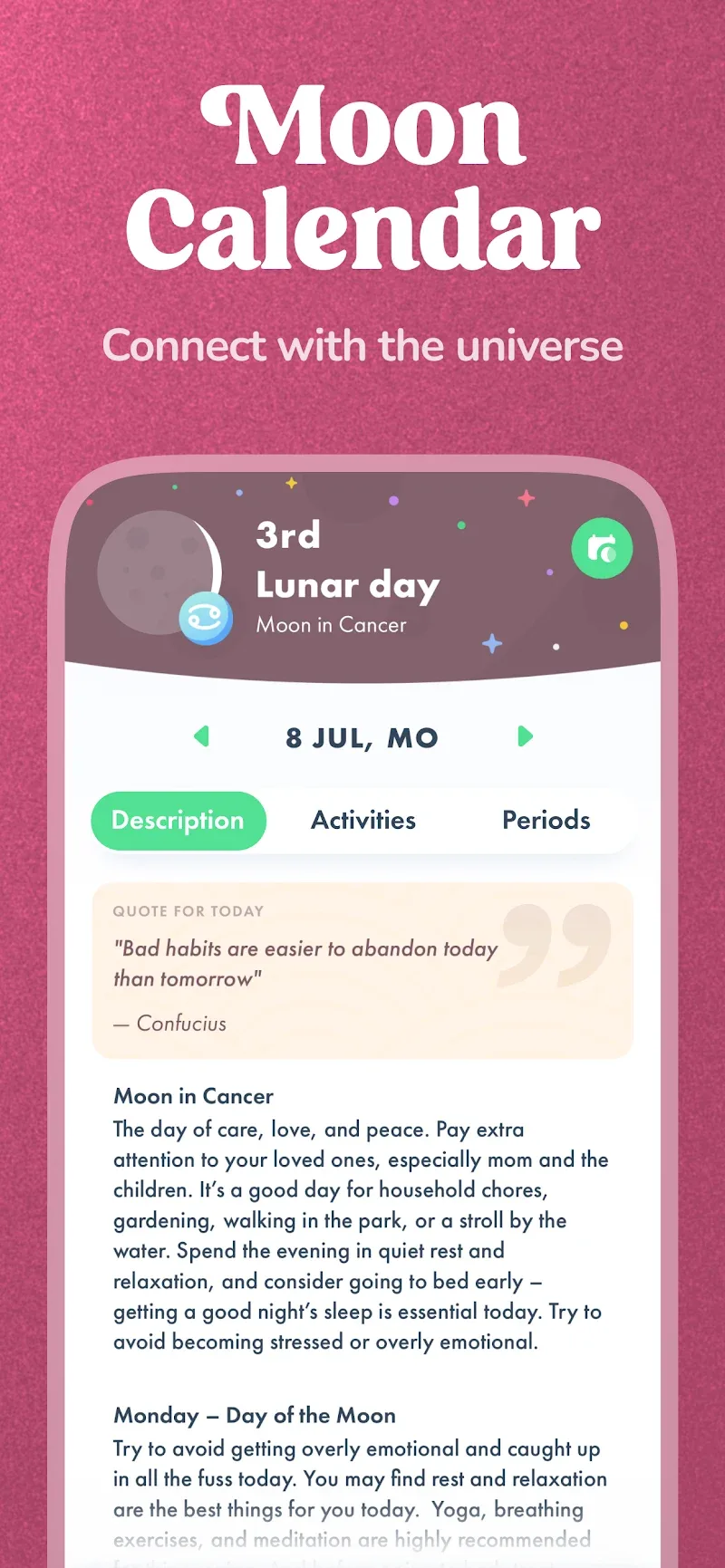 Navamsha: Moon Phase Calendar is an extremely unique calendar. This application will bring you a white-faced moon phase calendar. This calendar is a product of Vedic astrology, and you will quickly be able to observe and grasp information about astrology, yoga, and other things. The application also brings you other extremely useful features and tools. Are you ready to explore?