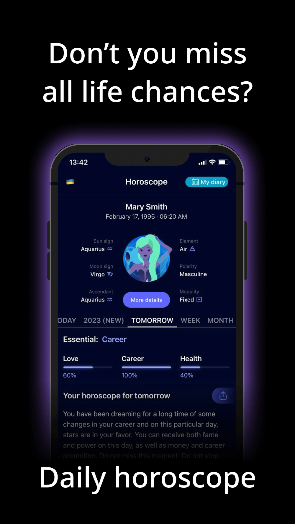 - Accurate forecasts: Based on your zodiac sign, the application determines your personalized daily horoscope.