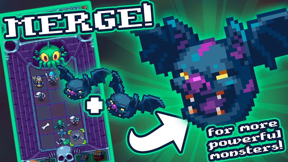 NecroMerger will be a game that can give its players unique entertainment experiences through various settings. If you are looking for an entertaining game that you will not spend too much time developing regularly, this will be a perfect choice. To bring players the most practical experience, the game’s maker has also chosen to build it in the style of combining Idle and Merge. With the Idle game mode, players can optimize the game experience time when the operating mechanism will be the resource of the game that will be generated even when the player is offline. And you will also be able to find unique fun with the Merge challenges you will need to go through.
