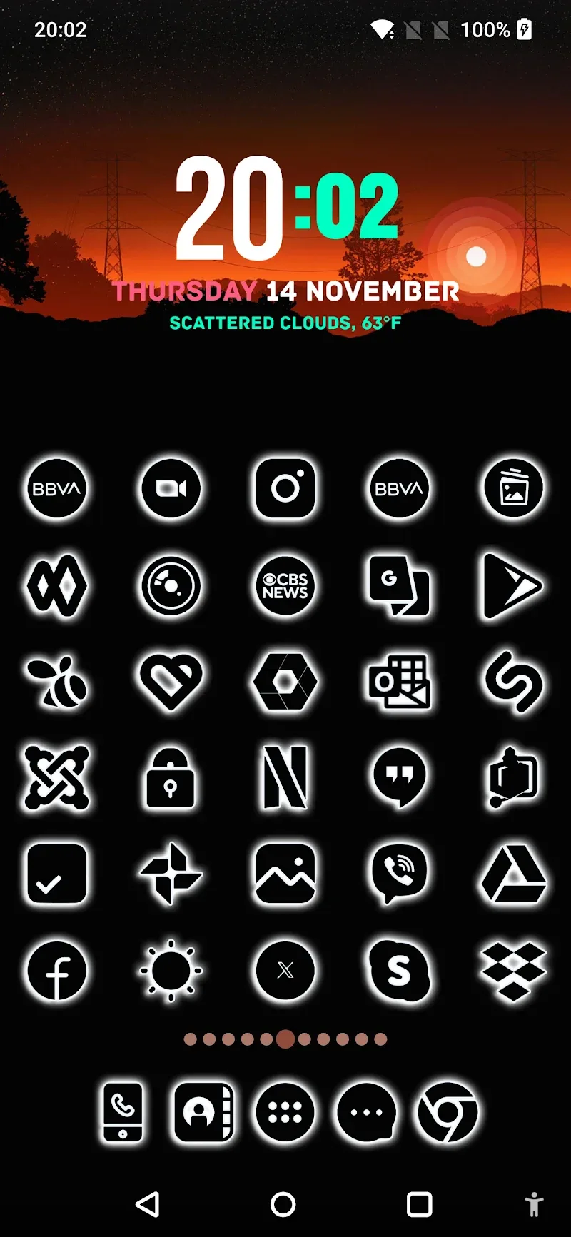 Neon-W Icon Pack provides icons with extremely eye-catching neon outlines. Users will admire a highly artistic icon pack. The icons in the pack are the same size and are meticulously designed in every detail. A collection of wallpapers with diverse themes is also shared with users.