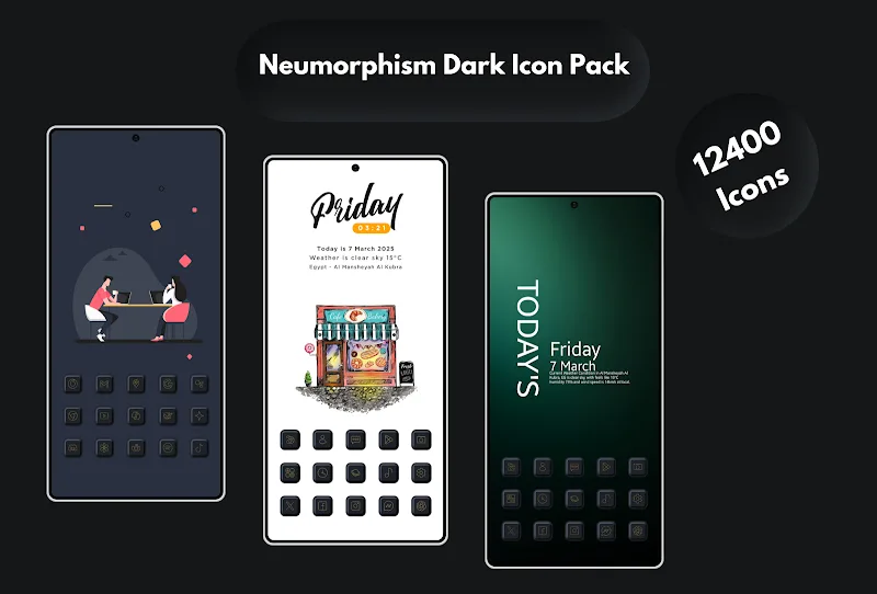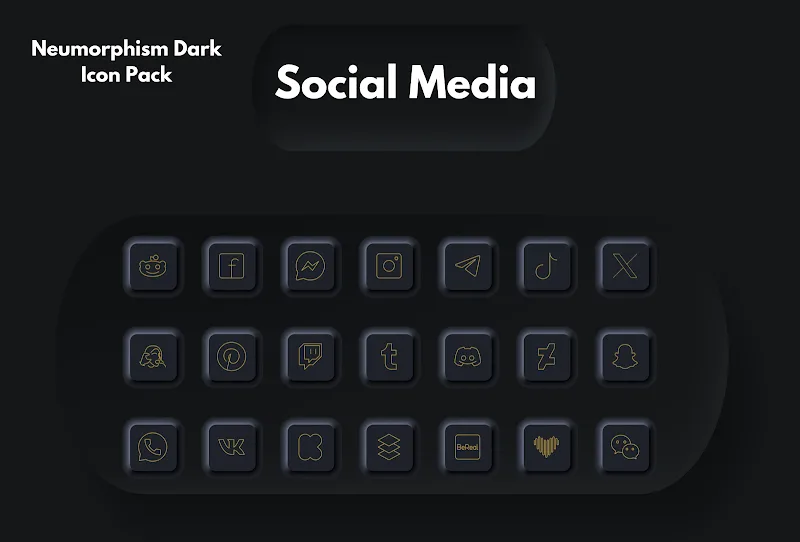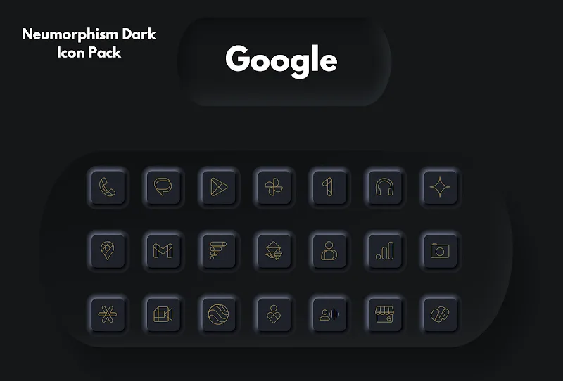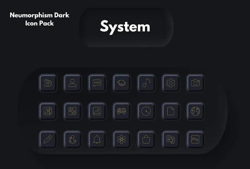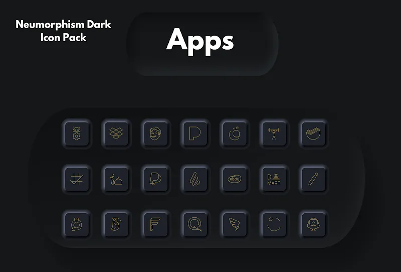 Neumorphism Icon Pack is a suitable choice for those who love dark themes. From there, you can find uniform colors when combining dark blue and gold for each icon. The variety often comes with impressive support that you can try such as adding effects to each design.
