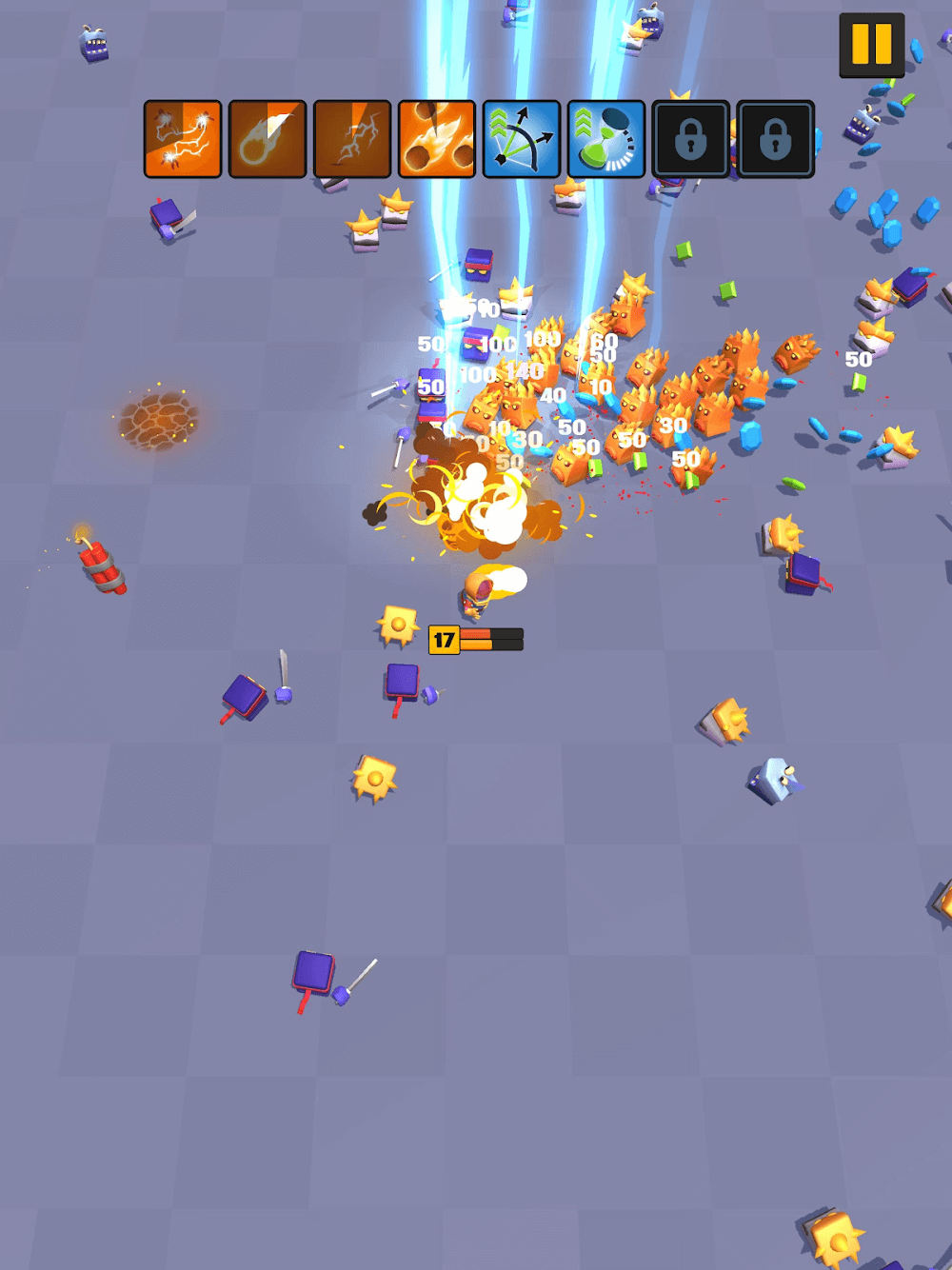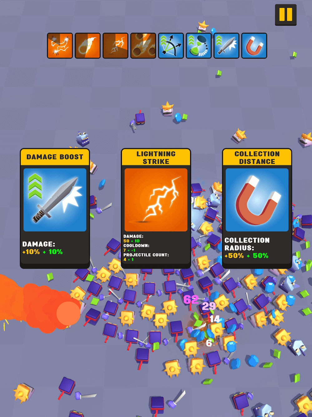 Like many other games, the player’s character needs to constantly level up to become stronger. Every time their character is leveled up, of course, the player will be able to choose one of three skills that appear right on the screen. Depending on the way the player chooses, their character will have many directions. Each level has a different construction and gameplay.