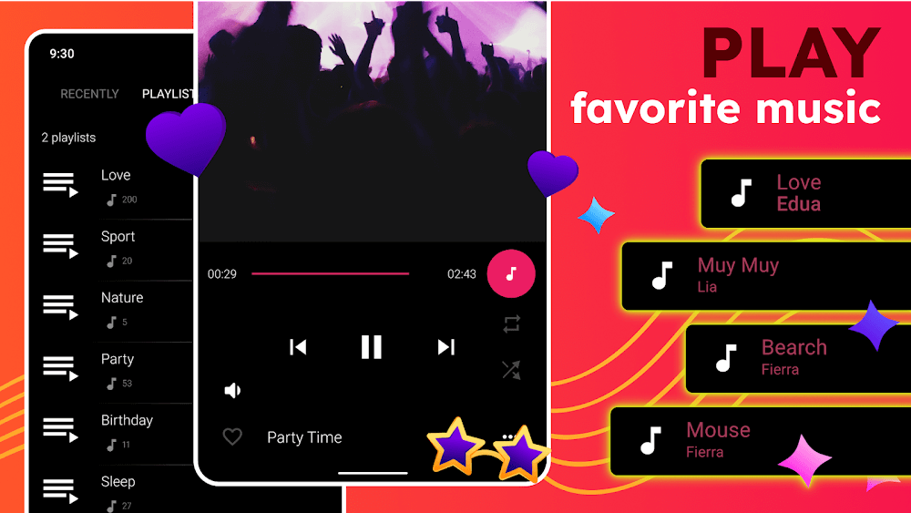 • Playlists: You can create and manage playlists within the app, making it easy to organize your music.