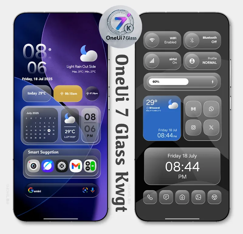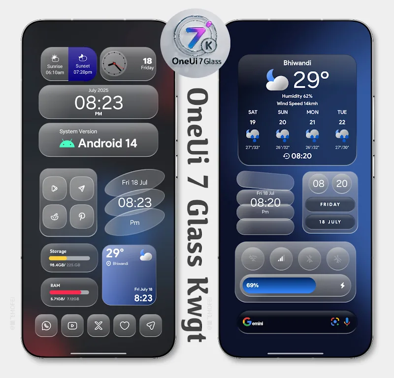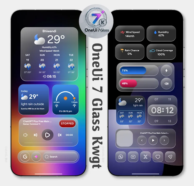 Coming to OneUi 7 Glass Kwgt, you will come to countless new interfaces with your endless creativity. The application will provide you with unique and attractive icons. These icons allow you to use and create freely. Your device will become more unique and outstanding with the most beautiful and fashionable interfaces. Come quickly and refresh your device right away.