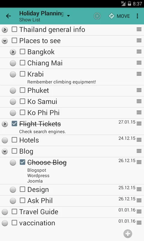 The application will provide you with a task structure like a tree. With this structure, you can organize your tasks quickly and easily without much difficulty.