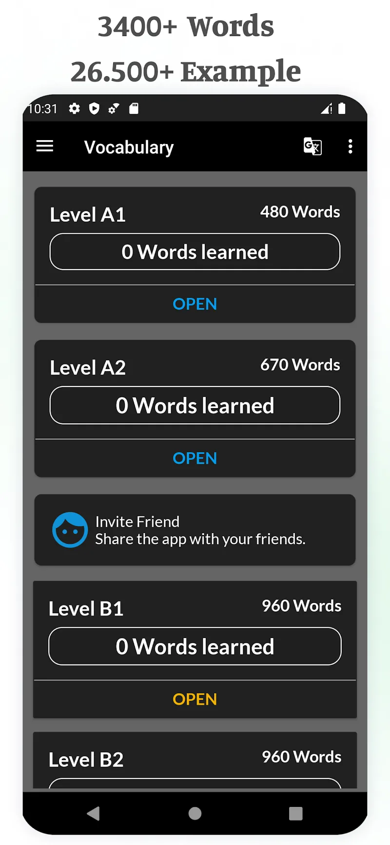 You can quickly test your knowledge. The app provides a variety of tests at different levels. You’ll quickly see where you stand without much difficulty.