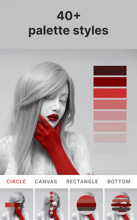 - Custom palette creation: Although everything will be provided automatically by the app, users can still easily choose their favorite colors and organize them the way they want.