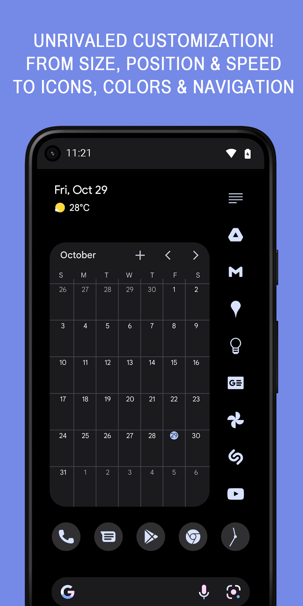 At its core, Panels enables unmatched edge bar customization for your perfect workflow. Configure the sidebar with complete control over rows, columns, labels, icons, sizes, gestures and positions. Customize colors for the overall bar or individual items. Save color schemes to easily alternate styles. Build your optimal productivity platform.