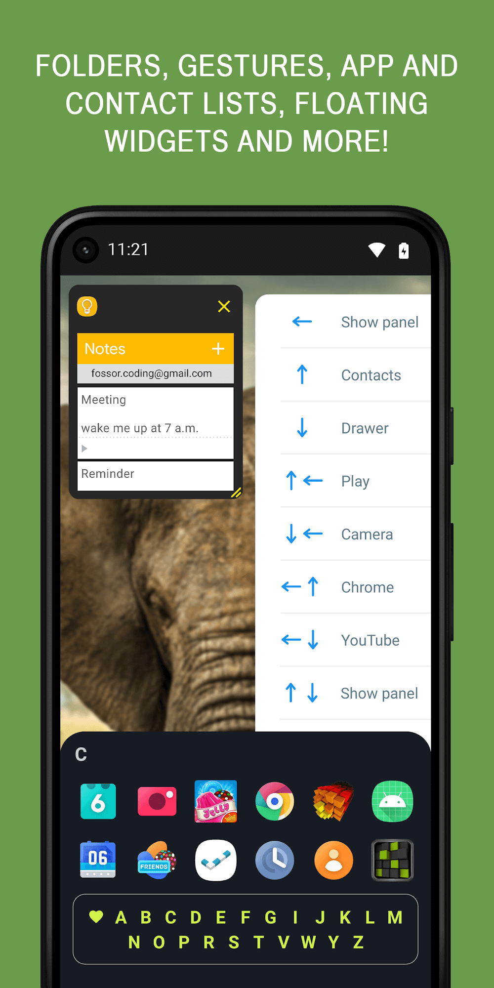 Panels delivers the ultimate customizable edge screen to maximize productivity through quick access to apps, widgets and tools. Uniquely configure the sidebar with adjustable rows, columns, colors, icons and labels. Set individual gestures for items. Freely position panels left, right or bottom. Keep favorite apps, contacts, widgets and system shortcuts on call. Boost multitasking by intuitively swiping to tools over any app. Create folders and home website links. Enable floating movable widgets. Customize to your exact needs with icon packs and color schemes. Panels adapts any launcher through relentless configurability. Say goodbye to hunting across screens. Your ideal workstation is an edge swipe away.