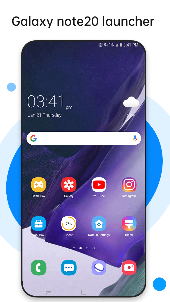 Perfect Galaxy Note20 Launcher Mod APK provides various featured effects, new interfaces, and themes. The application is inspired by the Galaxy Note20 and brought here to give you the best experience. You will get a pleasant experience and be allowed to choose the equivalent features in this application. In addition, you will also be allowed to edit and specify the change of features and settings in this application.
