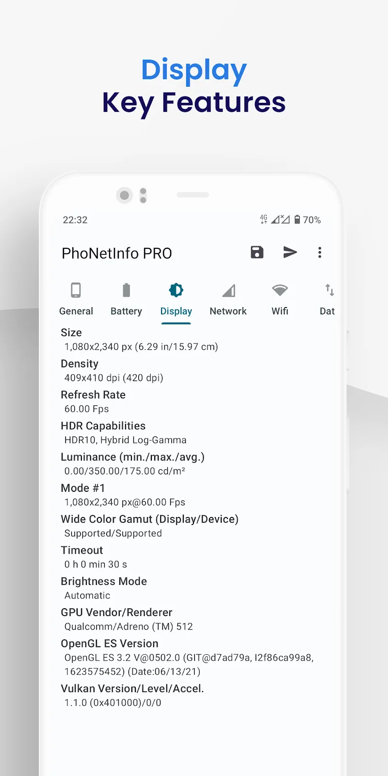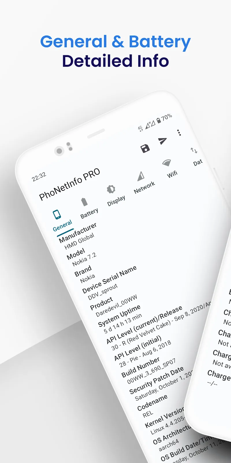 Device Info – PhoNetInfo PRO will provide detailed information about the device’s hardware and software so that users can update effectively. Interestingly, the application will provide the minimum battery status, as well as the information mode, which will be displayed in string form for you to easily grasp. The application will bring you easy navigation features and change the interface to suit the device.
