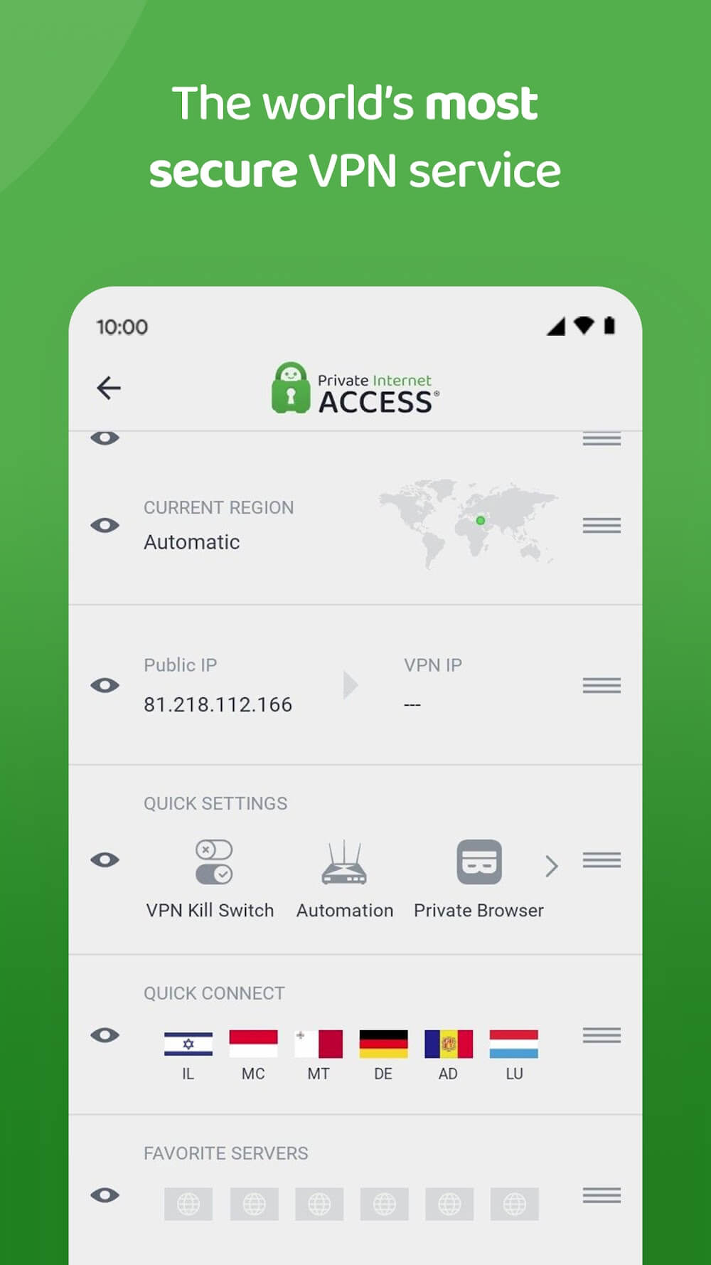 Fast and convenient connection is one of the strengths of Private Internet Access VPN because you will not need to go through any registration steps. Everyone doesn’t like this step because they are forced to create a new account and try to remember to log in next time or use it for other platforms. For this application, the work to be done is quite simple: access, select the server, and make the connection, which only takes a few minutes. So you can go to the website you like or play the game you love with just a few taps instead of waiting and constantly increasing frustration.