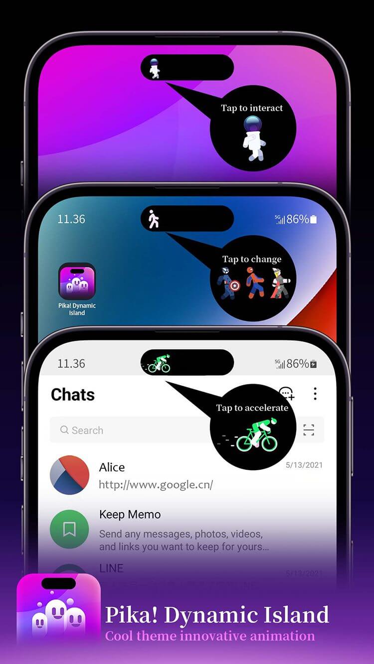 - Dynamic Effects: The system learns the characteristics of Dynamic Island and brings them to your device. From there, you can also interact with the same feature to learn about the animations.