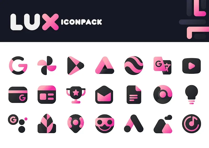 The icon pack released by Pink IconPack: LuX will fascinate users with its extremely impressive designs. All the icons are covered in charming pink and black. The unique combination of high-contrast color pairs and glossy effects makes the icon pack more eye-catching.