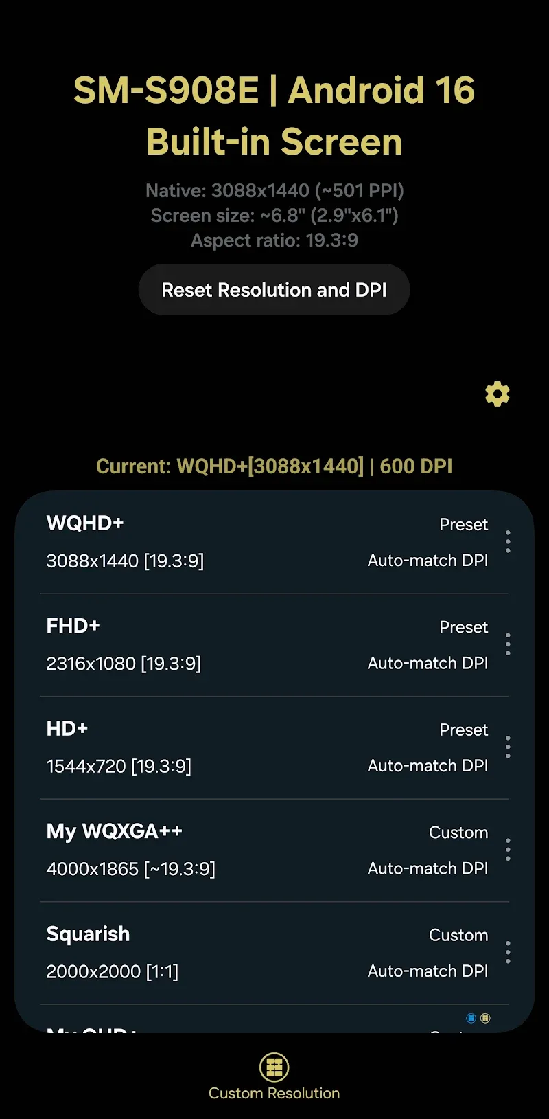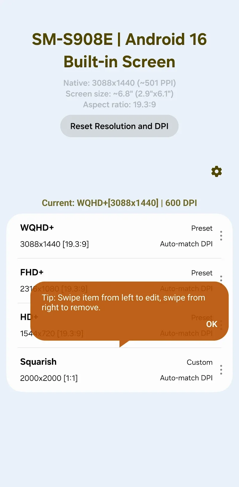 • Instant, precise adjustment: The app helps to check and apply any screen resolution with precise DP adjustment for perfect clarity.