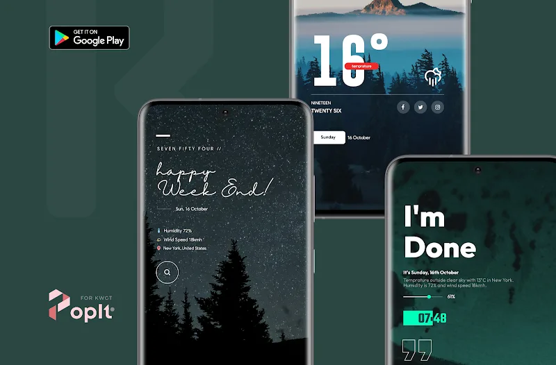 PopIt KWGT will bring you fresh and unique interfaces. Beautiful icons, tools, and images will be provided to you. You can quickly create new interfaces to replace the boring default interface on your device. With this application, you will be free to create according to your wishes and preferences. Come and beautify your device now!