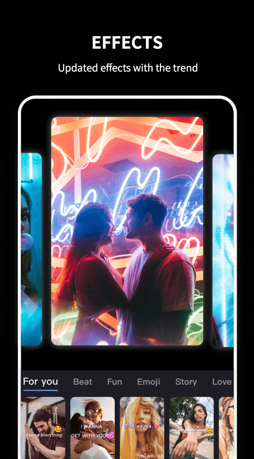 This app includes a wide range of video transitions and effects that can be customized. You need to select the content you love, then click the “Apply” icon to notice the video’s change immediately. Furthermore, new content is regularly added to meet users’ tastes and needs worldwide. With this application, you are free to use as many tools as you like; The only thing that matters is your level of imagination.