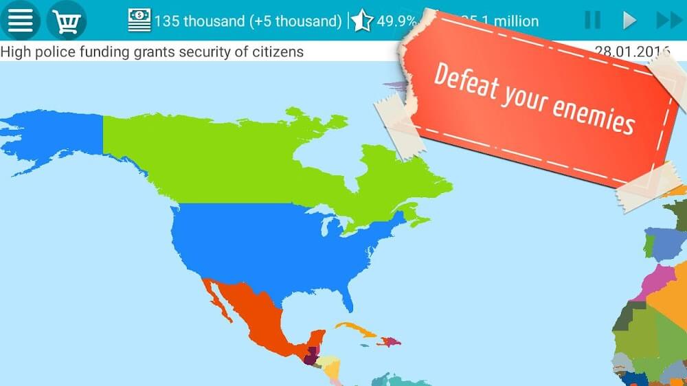 If diplomacy doesn’t work, President Simulator allows you to go to war and conquer other countries. Your strategy will determine whether you can maintain control of regions you have acquired or allow those territories to secede. Adding this new component raises the game’s difficulty and allows you to experience some of the thrills of winning a battle.