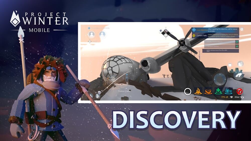 Repair the radio station cabin using objectives. To earn crafting materials to repair the radio station, you need the cut trees and break rocks. Hunt animals, eat berries to stay alive and open crates to complete your objectives. Call an emergency vehicle to escape. Take as many survivors as possible with you, and Keep an eye on the traitors who sabotage your escape.