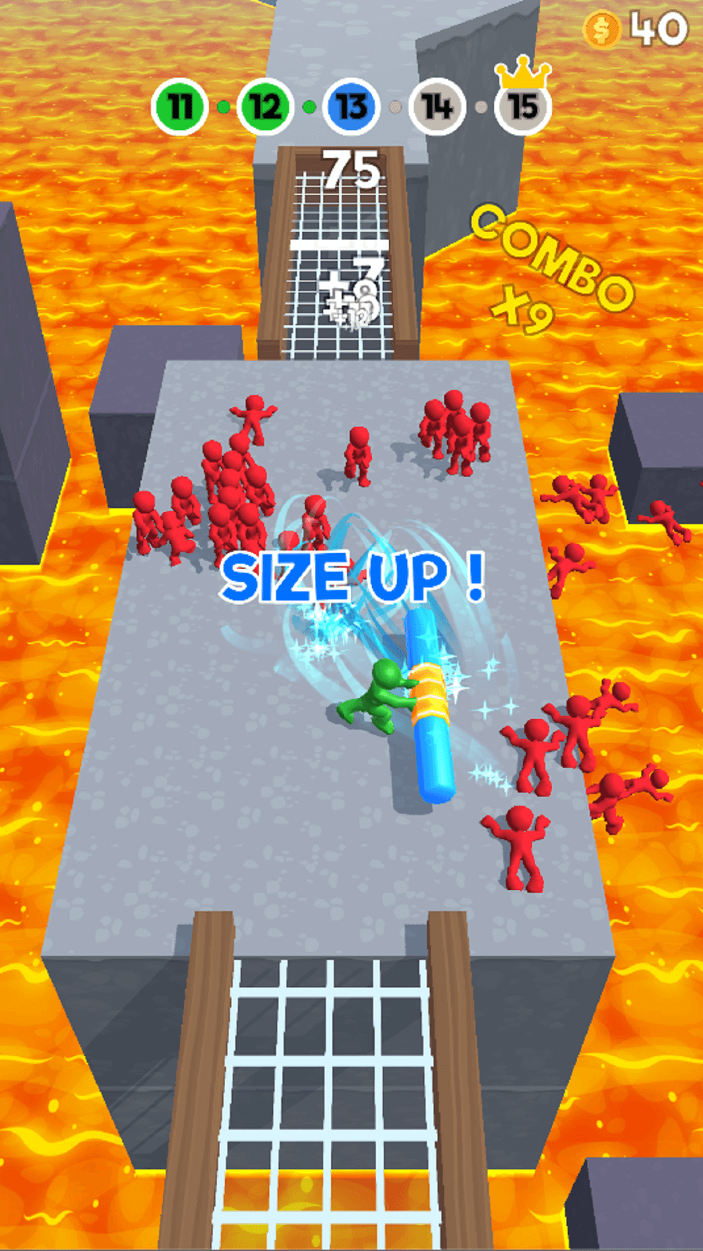 Push’em all weapons, power-ups, and offline earnings must be leveled up. The character’s fighting ability and financial status will increase as the player passes the levels. Do not be shy; Pay as much as possible to optimize these stat boosts. The player has the stick available but can also pick up other weapons on the current screen. A cannon is one of the most powerful weapons, and it will replace the use of spring pressure to push the opponent as it can attack from a wider distance. The threat to the player has decreased, but the player’s attack power against the enemy has also decreased.