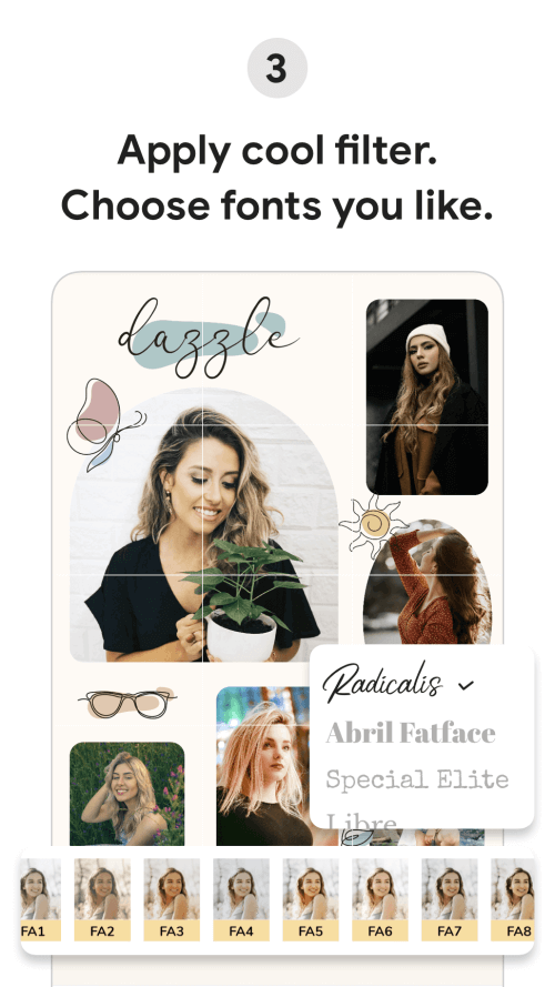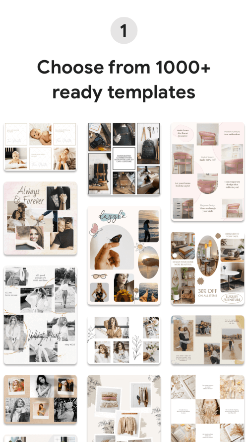 When using this application, you will be able to open your eyes to countless different puzzle designs. Each puzzle has a beauty and has its own meaning. Thanks to that, users can freely choose and use. The application gives you a variety of designs, fonts as well as many different sizes. Through that, you align the general to suit your personal profile and create an attractive and distinctive feature for your page. Templates can be reused to create new collections. You can choose from a wide range of templates and feel free to add pictures, texts, stickers and more decorations. Not only that, Puzzle Template also gives you many different image filters and parameters to adjust the color sets of the page. Users are free to arrange the layouts and adjust the information as they like. The application gives you many different types of text as well as many different types of unique images. Besides, they also allow you to upload personal images that are already in your photo album. Therefore, the process of editing and creating an instagram page is easier and faster.