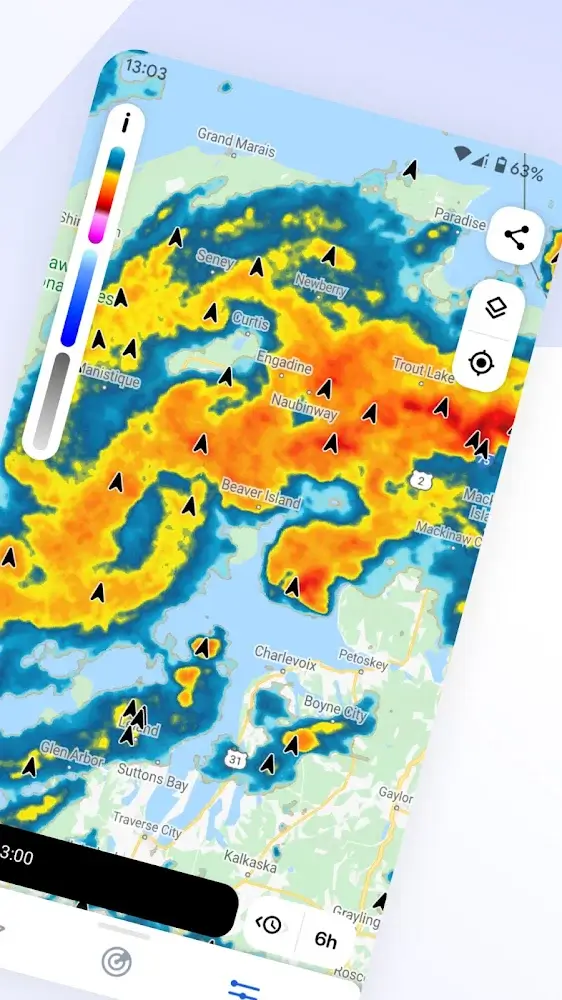 • Live animated radar: Based on the map provided by the application, you can know many types of rain, average rainfall, and snow in real-time.