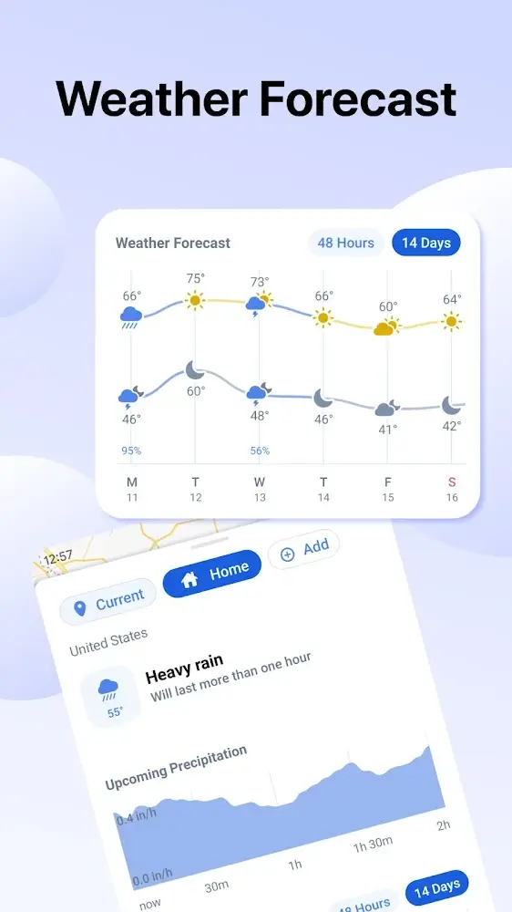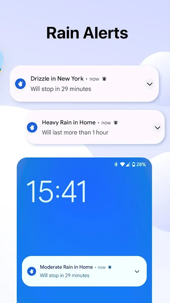 • Rain notifications: When rain is approaching, the application will send you notifications so you can take timely countermeasures.