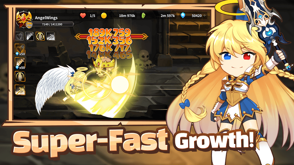 “Idle RPG is extremely simple to learn and play. Meet and get to know your very own powerful fighter.” Players will receive a fantastic gift to commemorate Raising Archangel’s release. When you log in, you will receive 5,000 diamonds and SS weapons.