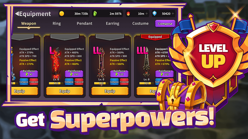 - Equipment customization with 60 kinds of equipment, including powerful weapons and accessories